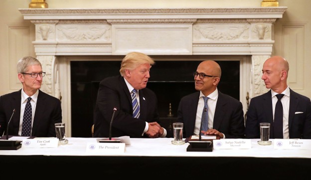 Nhưng chính quyền Trump nhiệm kỳ thứ hai còn tiến xa hơn nhiều. Nếu một bức ảnh đáng giá ngàn lời, thì hình ảnh các nhà sáng lập và CEO của các tập đoàn công nghệ lớn (bao gồm cả Amazon, Meta và X) ngồi kín hàng ghế đầu tại lễ nhậm chức của Trump chính là một tuyên ngôn.