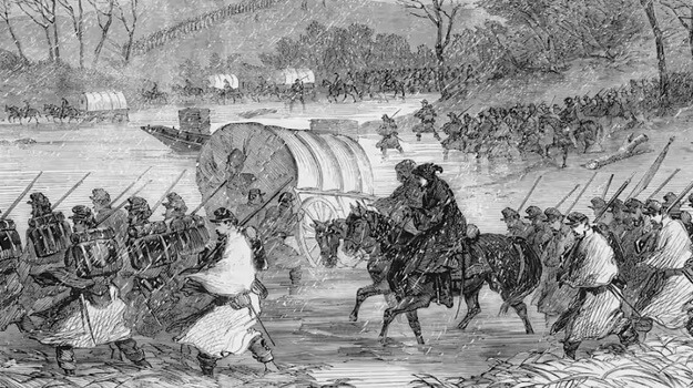 Vào ngày này năm 1863, Binh đoàn Potomac của Tướng Liên minh miền Bắc Ambrose Burnside bắt đầu mở cuộc tấn công nhắm vào Binh đoàn Bắc Virginia của Tướng Robert E. Lee. Tuy nhiên, chiến dịch nhanh chóng sa lầy khi những cơn mưa lớn kéo dài nhiều ngày biến các con đường tại Virginia thành những bãi lầy nhão nhoét. Chiến dịch đã bị hủy bỏ chỉ vài ngày sau đó.