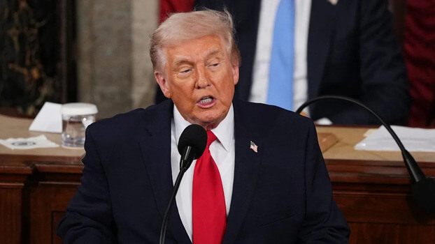 Donald Trump có bài phát biểu Thông điệp Liên bang dài nhất trong lịch sử. Dưới sự chứng kiến của bốn thẩm phán Tối cao Pháp viện, Tổng thống gọi quyết định của tòa án về việc hủy bỏ nhiều biện pháp thuế quan của ông là “đáng tiếc,” và cho rằng các khoản thuế này đã thúc đẩy tăng trưởng mà không làm tăng lạm phát. Ông hứa sẽ hạn chế tăng giá điện và ca ngợi chính sách năng lượng “khoan đi, cưng ơi, khoan đi” (drill, baby, drill) của mình. Ông một lần nữa cảnh báo Iran không được theo đuổi vũ khí hạt nhân. Và đúng như dự đoán, ông cũng lên tiếng chỉ trích mạnh mẽ những người nhập cư bất hợp pháp và các chính sách dành cho người chuyển giới.